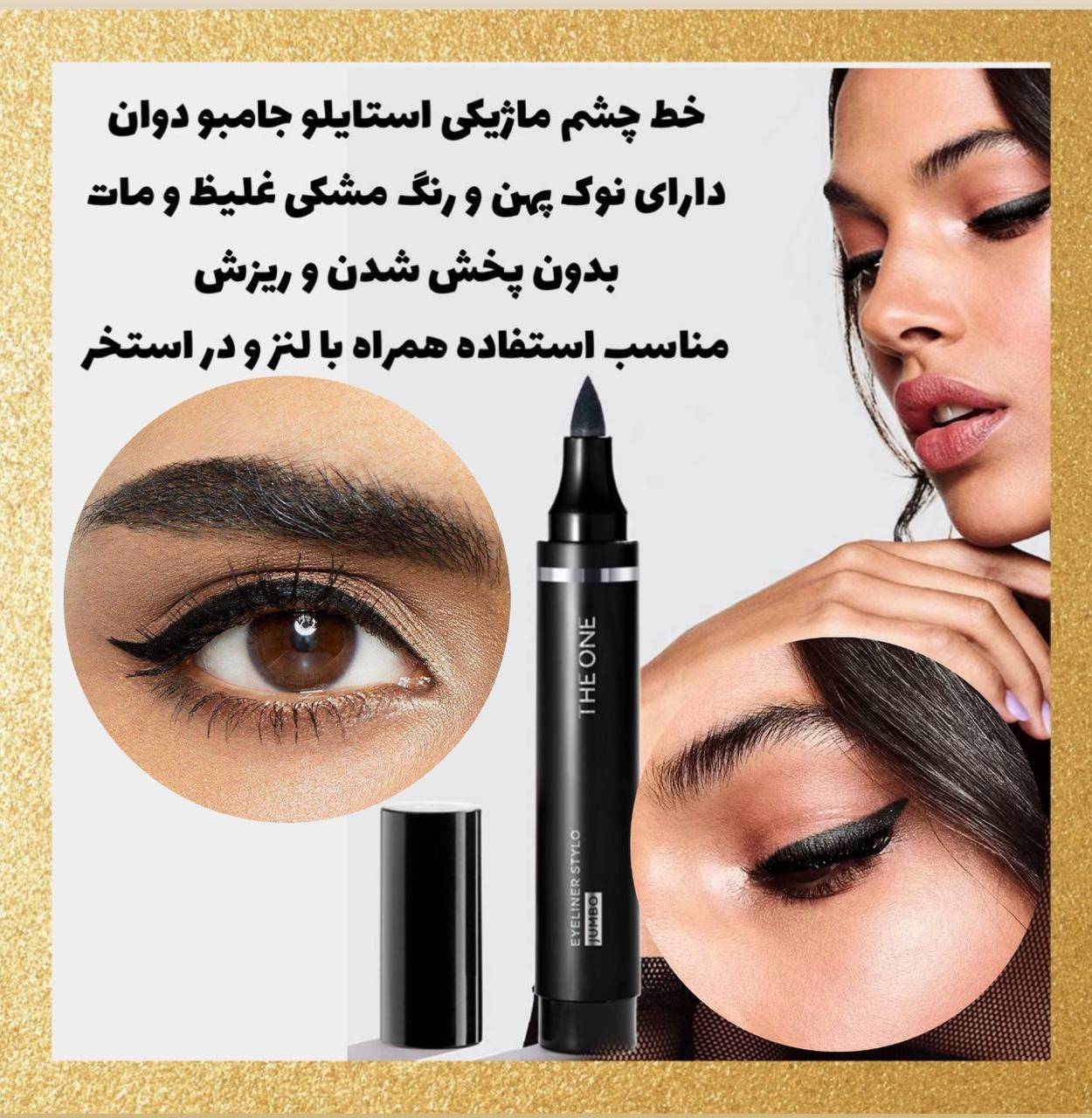 خط چشم ماژیکی استایلو جامبو دوان The One Stylo jumbo داراي نوک پهن و رنگ مشکی غلیظ و مات با ویژگی استفاده آسان و ماندگاری بالا قابلیت استفاده در استخر و حتی استفاده با لنز بدون پخش شدن و ریزش، برای کشیدن خطی صاف و بی نقص بسیار زود خشک میشود و ماندگار می باشد. .نگاهی عمیق به چشمانتان می دهد و با آرایش پاک کن ها به راحتی پاک میشود. .هم برای کشیدن خط پهن و هم باریک قابل استفاده میباشد.