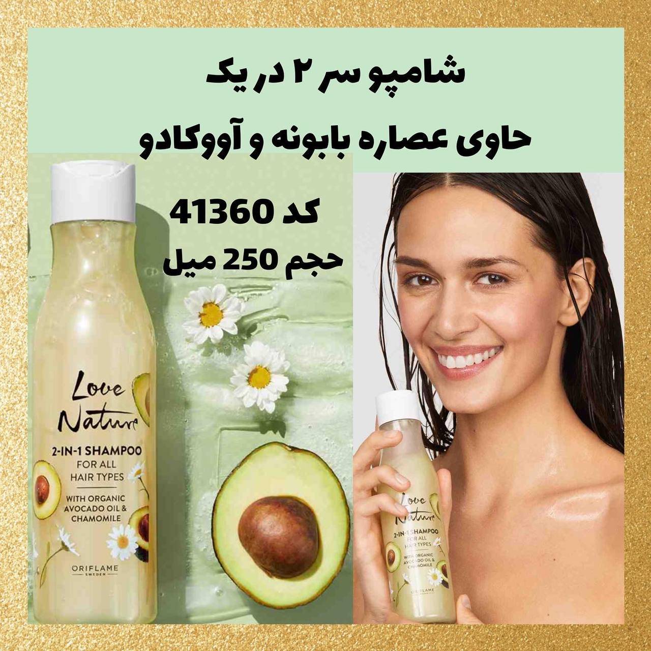 شامپو دو در يك حاوي عصاره آووكادو و گل بابونهمناسب انواع موهاشامپو و نرم كننده هردو در يك محصول