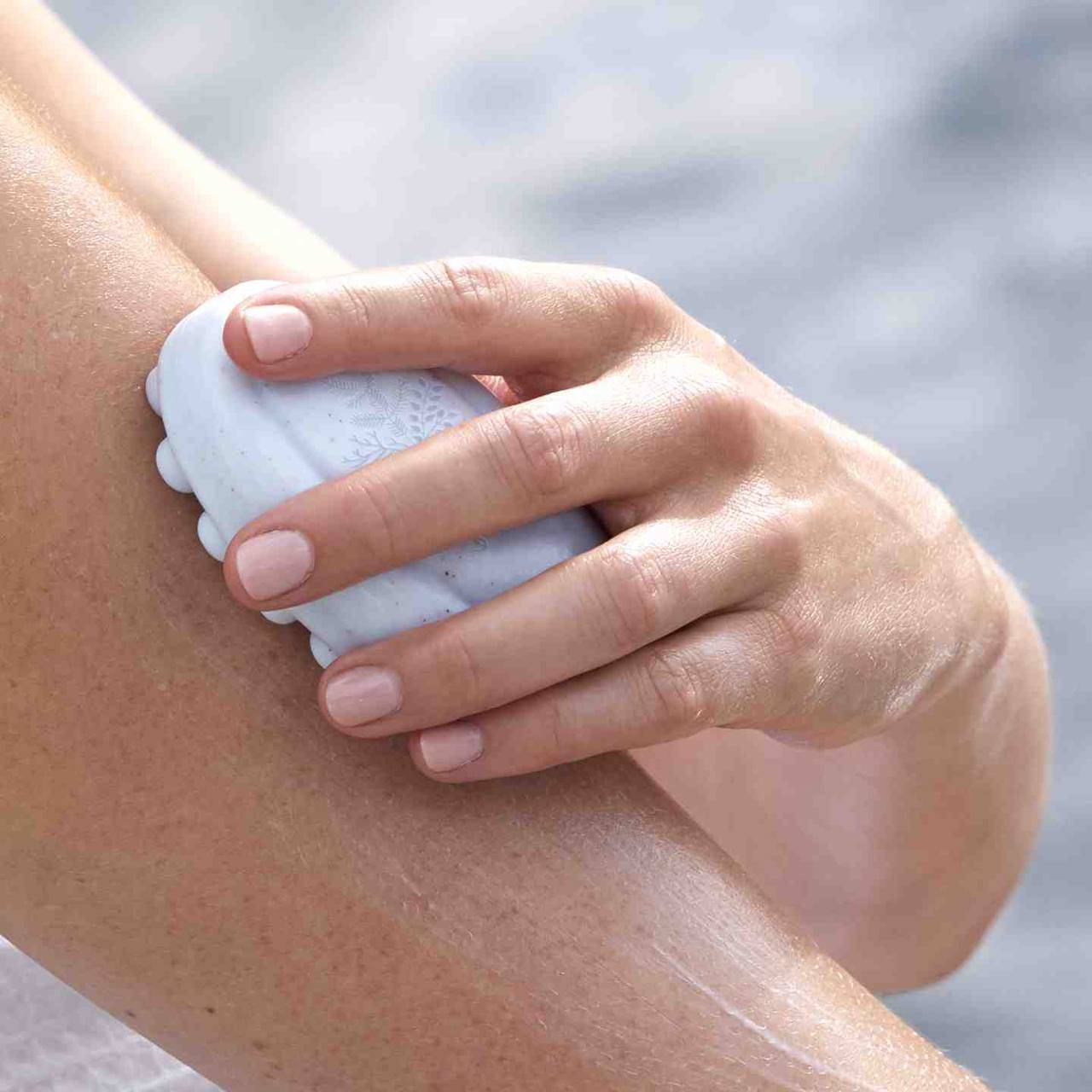2. طرف دیگر صابون را بر روی پوست خیس قسمت هایی که نیاز به لایه برداری بیشتر دارند استفاده کنید.