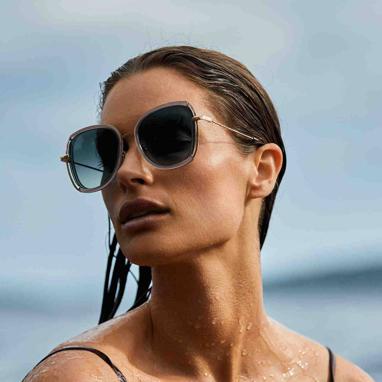 استایل سایز بزرگ، ظاهری شیک را به قاب فلزی کلاسیک، طراحی شده با جزئیات طلایی ملایم و لنزهای رنگی گرادیان، می بخشد.