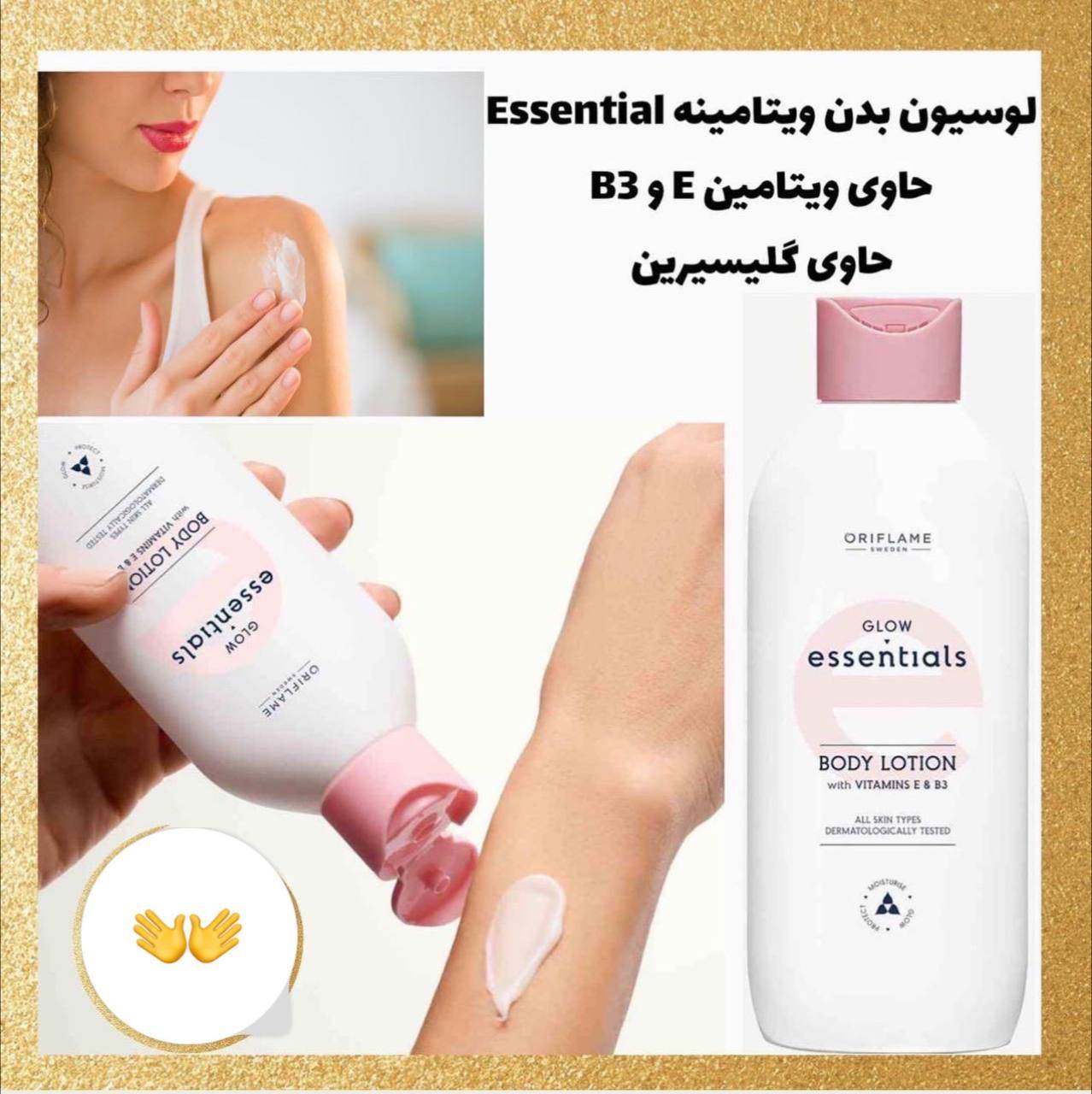 لوسیون بدن اسنشیالز حاوی گلیسیرین ،ویتامین E و ویتامین B3
