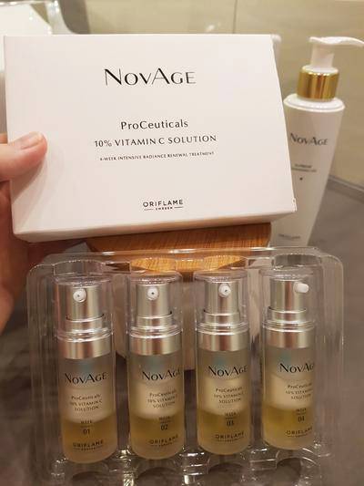 محلول ویتامین C 10�NovAge Proceuticals یک رژیم فشرده 4 هفته ای ضد هیپرمیگمانتاسیون است که به طور فعال از تولید بیش از حد ملانین در سطح سلولی جلوگیری می کند تا رنگ پوستی شفاف و یکنواخت تر داشته باشد. این مکمل کاملی برای روتین روزانه شماست ویتامین C قوی تازه در محلول سرم تسکین دهنده مخلوط شده استچهره ای کاملا درخشان و یکنواخت را نشان می دهدویتامین C برتر، تازه و قوی برای نتایج استثنایی تهیه شده است.