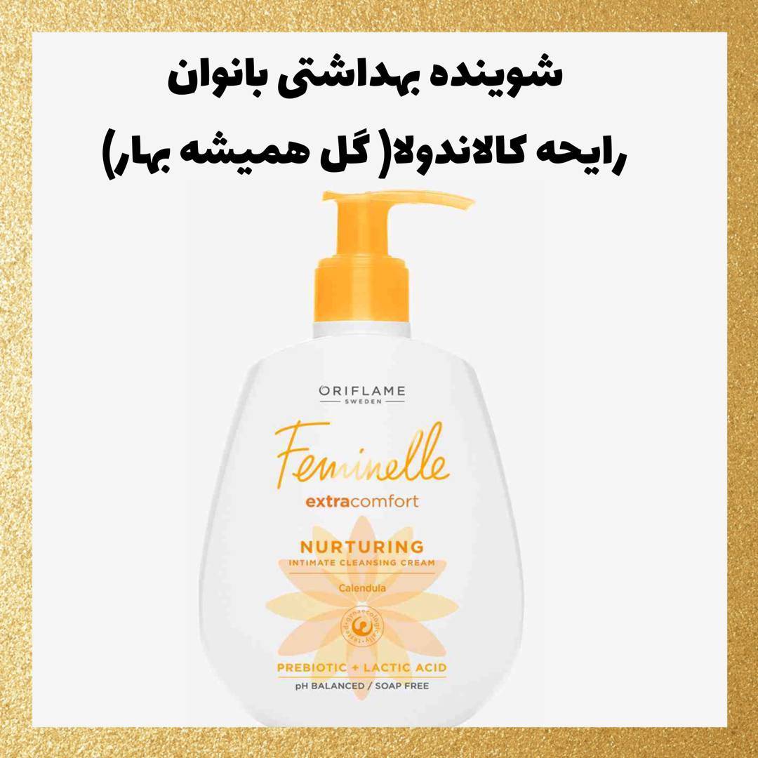 کرم شستشوی تغذیه کننده ناحیه تناسلی فمینله حاوی کالاندولا ( گل همیشه بهار )  پوست را تغذیه می کند و موجب حس راحتی در ناحیه تناسلی می شود.