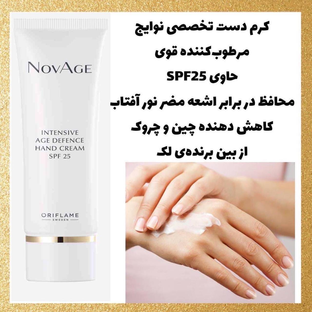 کرم دست ضدپیری SPF25 اوریفلیم سری نوایج محصولی که پوست دست شما را از روند پیری حفظ می نماید و پس از مدتی احساس جوانی را در دستان خود خواهید داشت. در مواقعی که میخواهید در معرض نور خورشید قرار بگیرید مانند مواقعی که قصد بیرون رفتن با ماشین شخصی خود را دارید و یا برای پیاده روی به بیرون میروید لازم است تا از کرمی برای دستان خود استفاده کنید تا کمترین آسیب را از نور خورشید ببینید. این کرم لازم است دارای مقدار مناسبی SPF باشد. کرم دست ضدپیری SPF25 اوریفلیم سری نوایج حاوی SPF 25 است. این محصول علاوه بر خاصیت ضد پیری، مرطوب کننده بسیار قوی برای دستان شماست. اگر تا قبل از آشنایی با این کرم از دستهای خود مراقبت نمیکردید و اشعه نور خورشید بدلیل استفاده نکردن از کرم حاوی SPF باعث ایجاد لک در پوست شما شده است، با اطمینان خاطر با استفاده از این کرم میتوانید لکهای موجود بر روی پوست دست خود را از بین ببرید و دیگر نگران وجود این لکها نباشید.