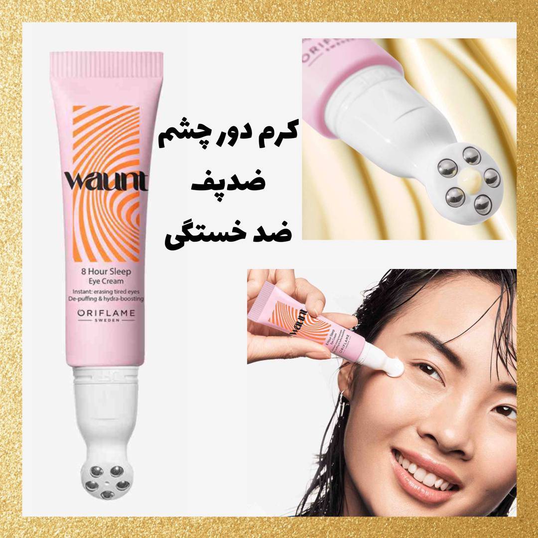 کرم دورچشم ضدپف و ضدخستگی ۸ساعته جدید Waunt اوریفلیم با دارا بودن پلی فنول آووکادو بلافاصله روی خستگیها و پف کار کرده و حالت کیسه ای و تیرگی ناشی از خستگی و بی خوابی در زیر چشم را برطرف میکند.