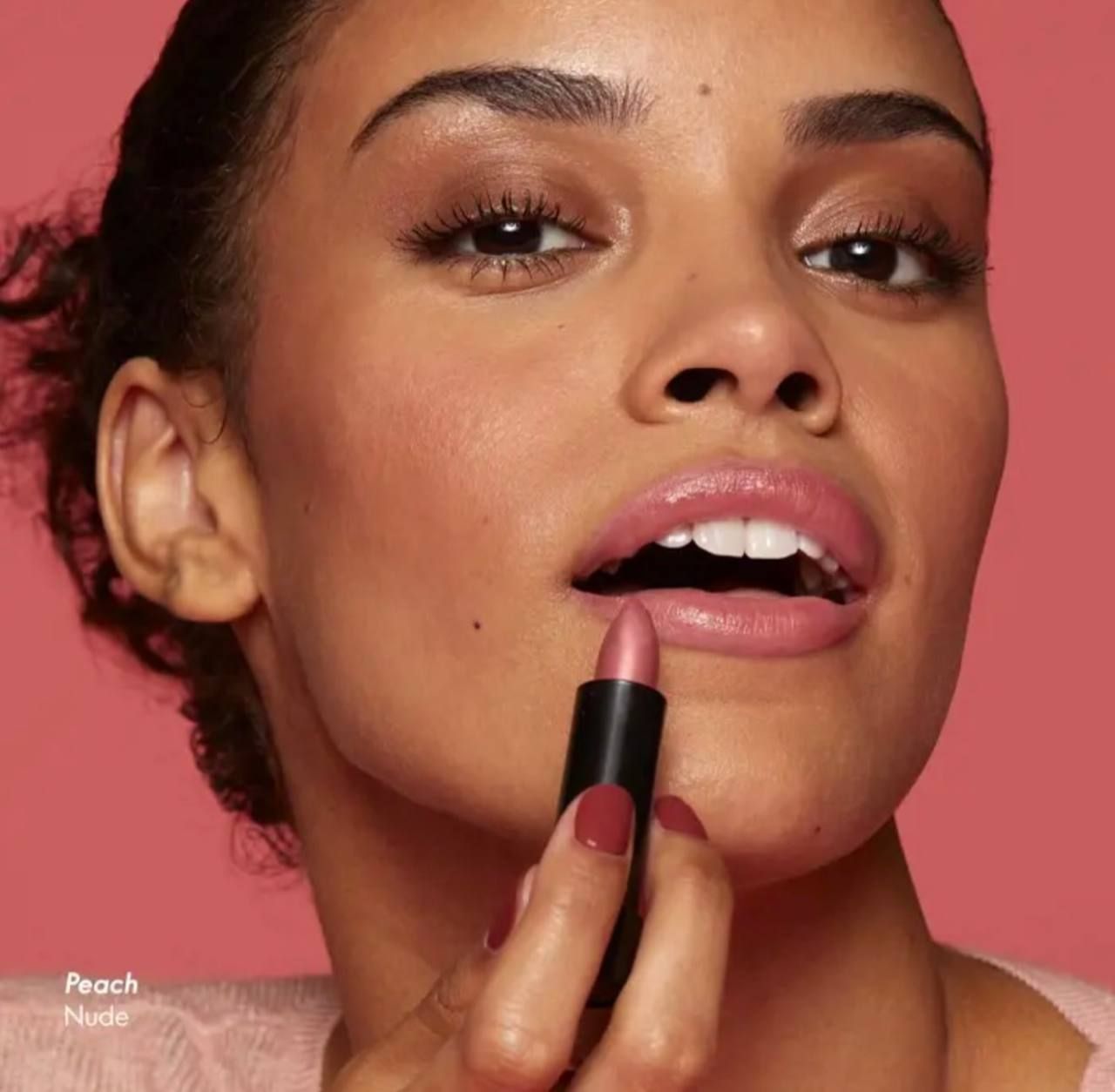2. رژ لب را از وسط لب به سمت گوشه‌ها بزنید تا پوشش یکنواختی ایجاد شود.