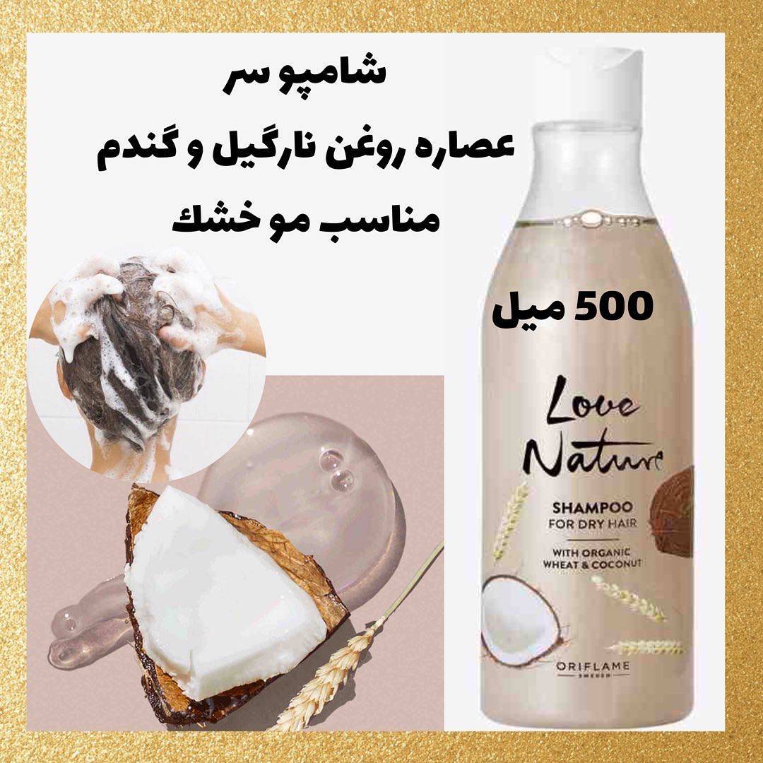 شامپو Love Nature اوریفلیم مخصوص موهای خشک با عصاره گندم و نارگیل ارگانیک